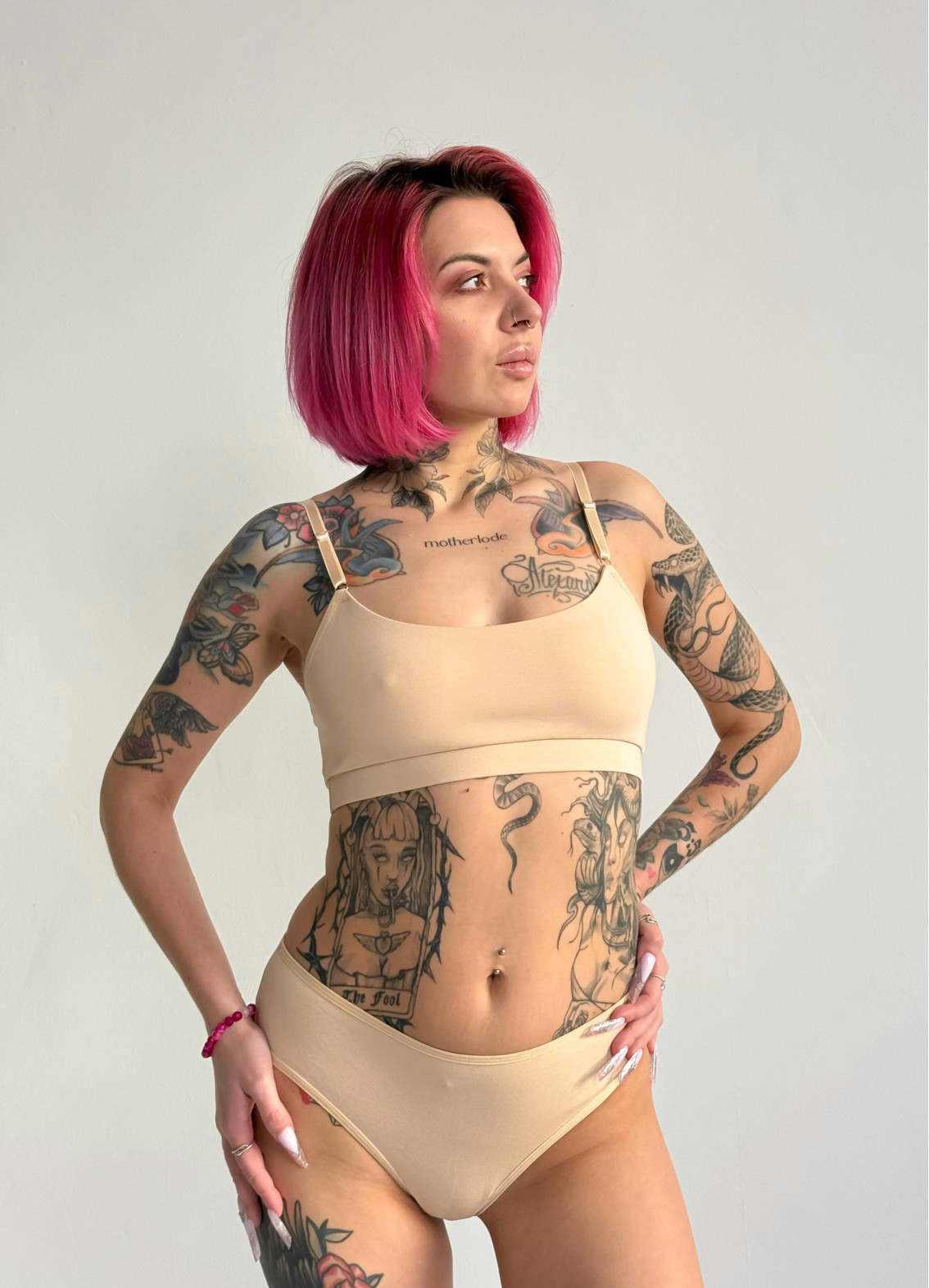 Універсальний комплект жіночої білизни, який поєднує простоту, комфорт і акуратний зовнішній вигляд. Лаконічний дизайн робить цю модель базовою та легкою для поєднання з будь-яким гардеробом. Комплект підходить для щоденного носіння, забезпечуючи відчуття легкості та впевненості протягом усього дня.