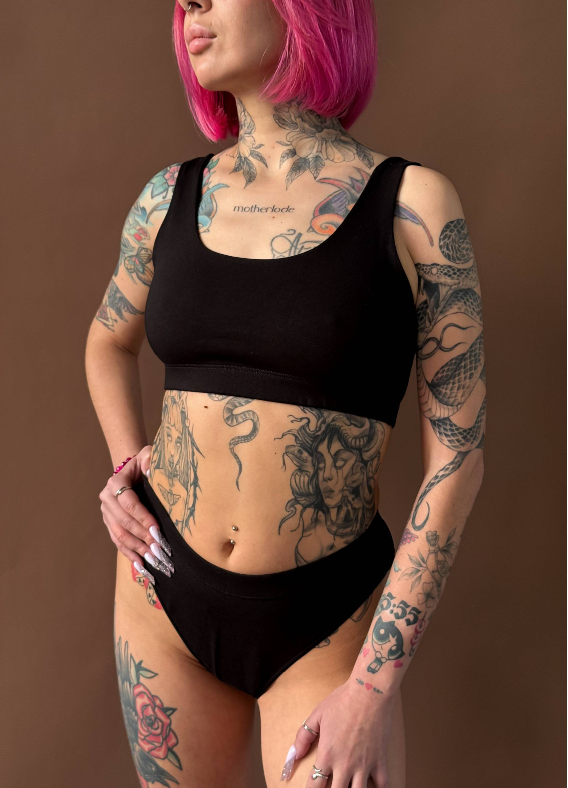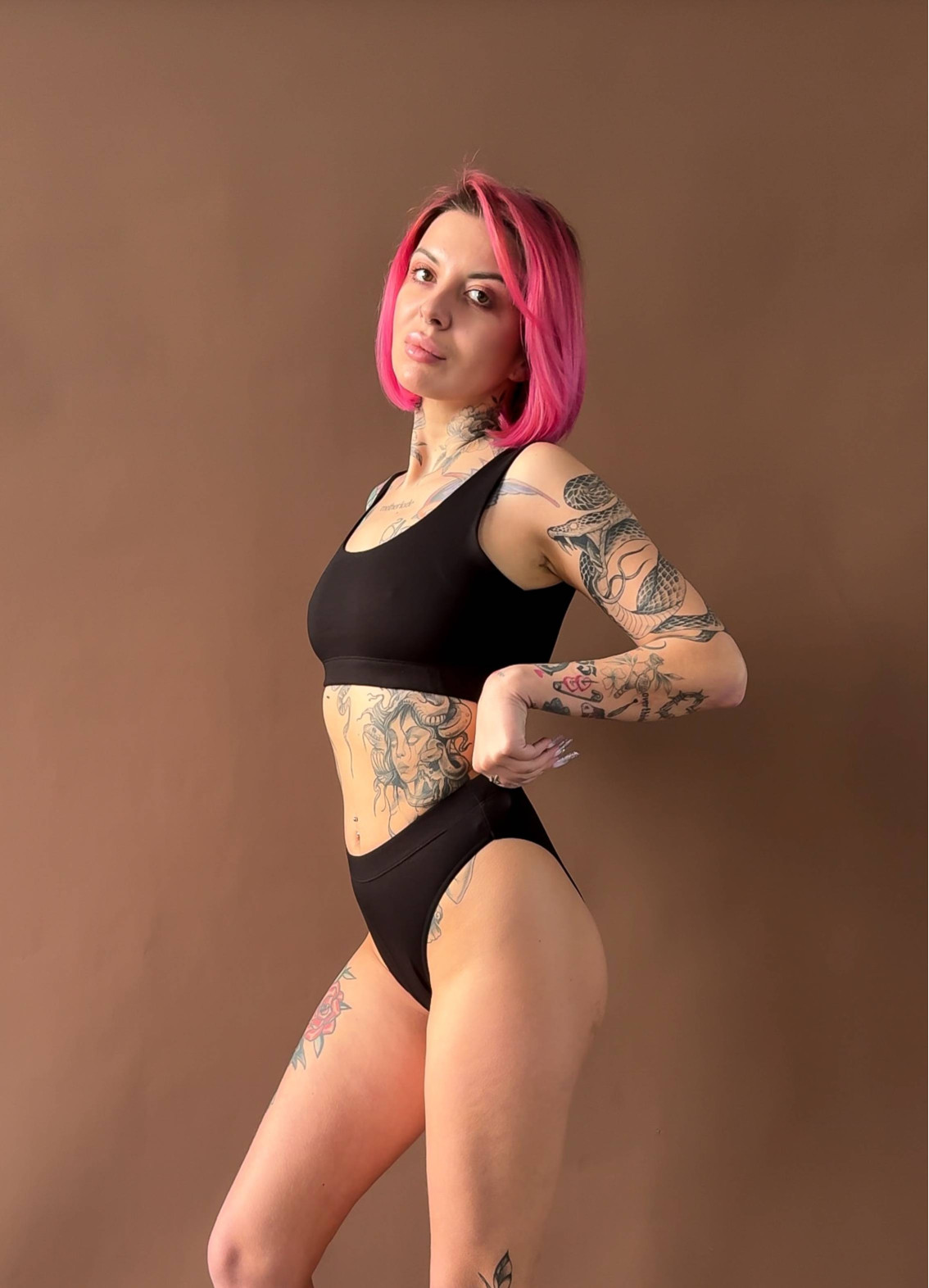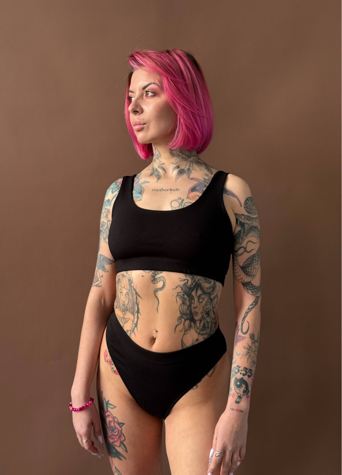 Жіночий комплект білизни топ та бразиліани, чорний 5257-5258