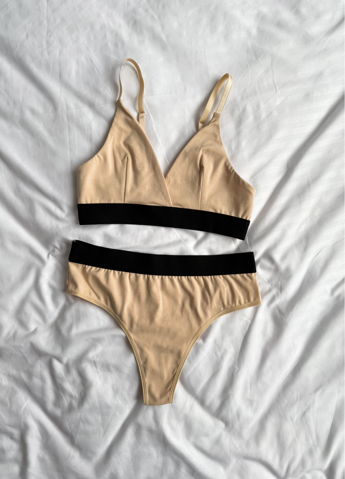 Жіночий комплект нижньої білизни бюстгальтер та стрінги, бежевий 5259-5260