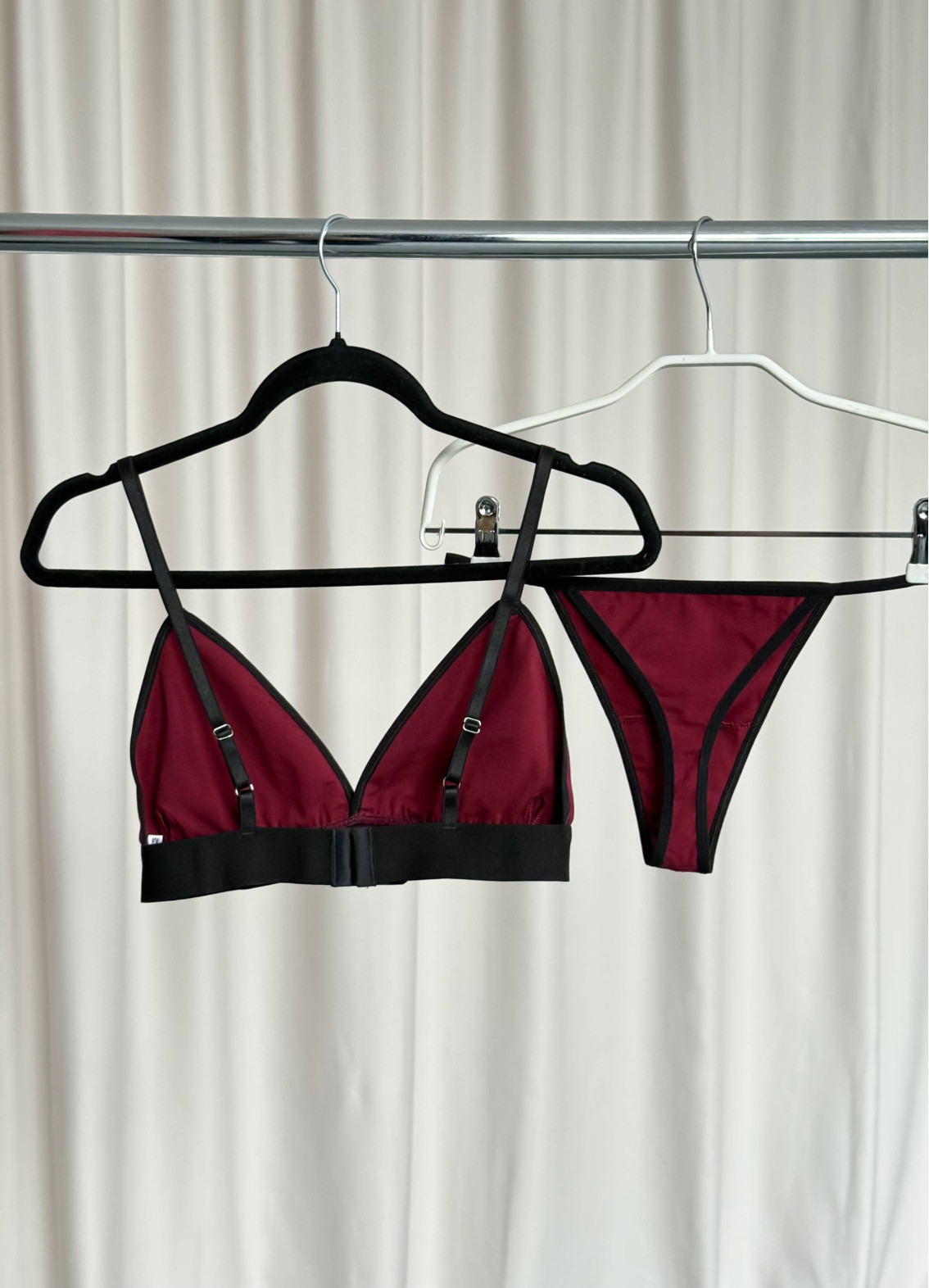 Жіночий комплект білизни бюстгальтер та стрінги, бордовий 5255-5256