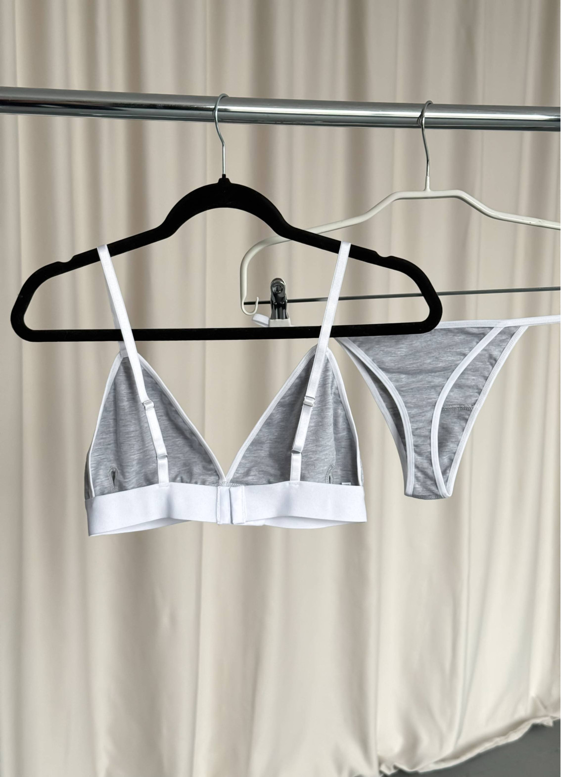 Універсальний комплект жіночої білизни, який поєднує простоту, комфорт і акуратний зовнішній вигляд. Лаконічний дизайн робить цю модель базовою та легкою для поєднання з будь-яким гардеробом. Комплект підходить для щоденного носіння, забезпечуючи відчуття легкості та впевненості протягом усього дня.