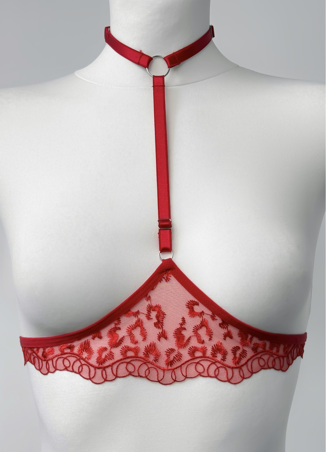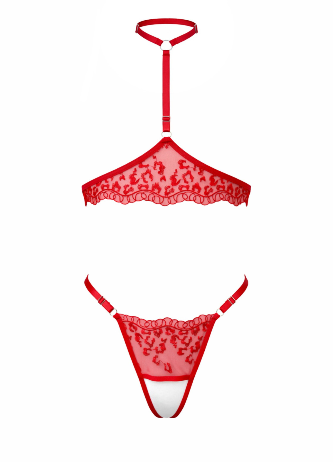 Жіночий комплект білизни мереживний відкритий бюстгальтер та стрінги, червоний 5284-5286