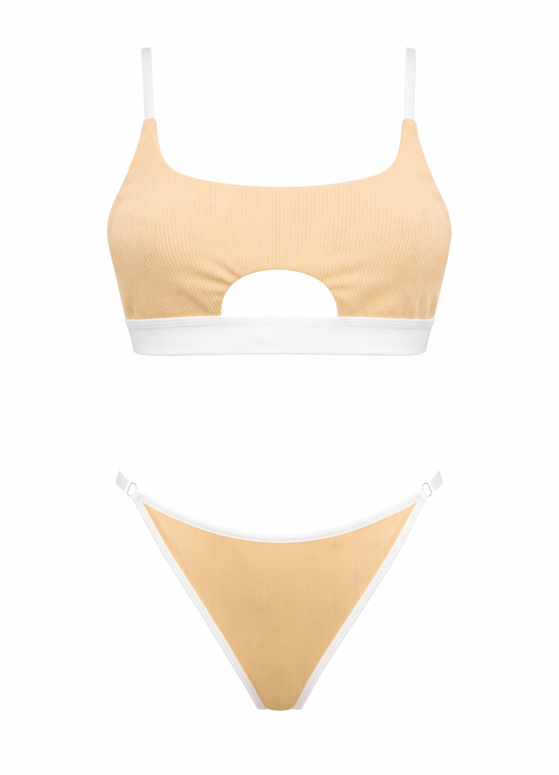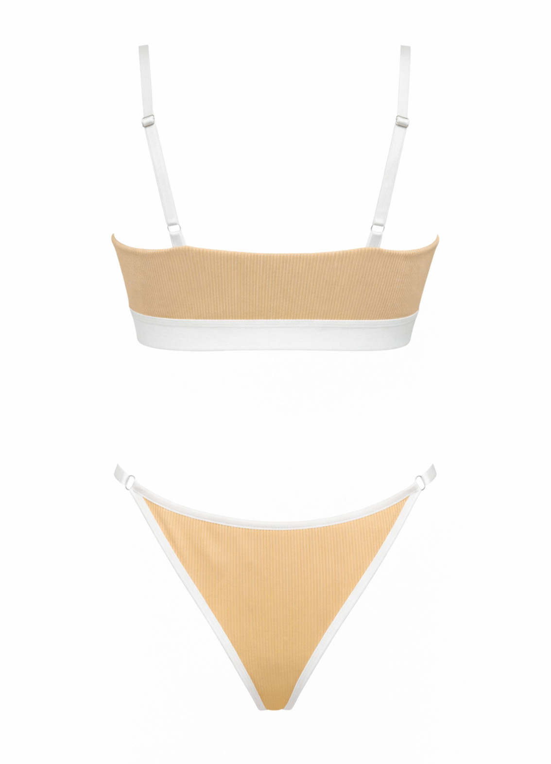 Жіночий комплект білизни в рубчик топ та стрінги, бежевий 5279-5280