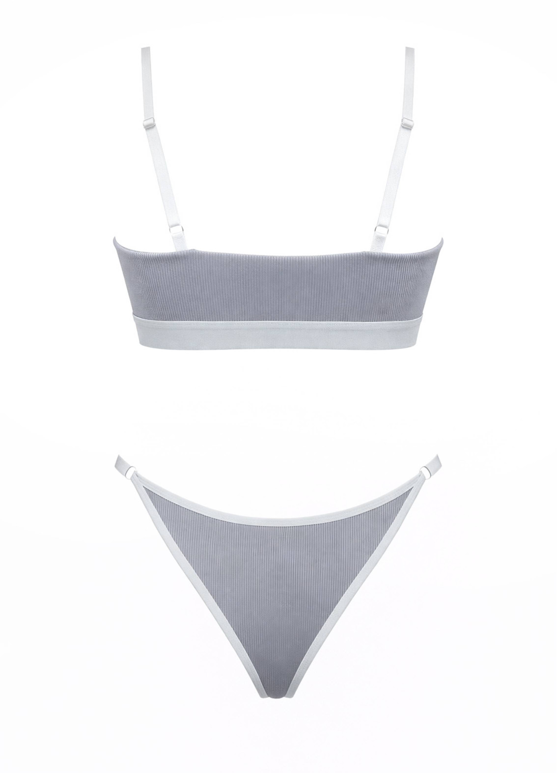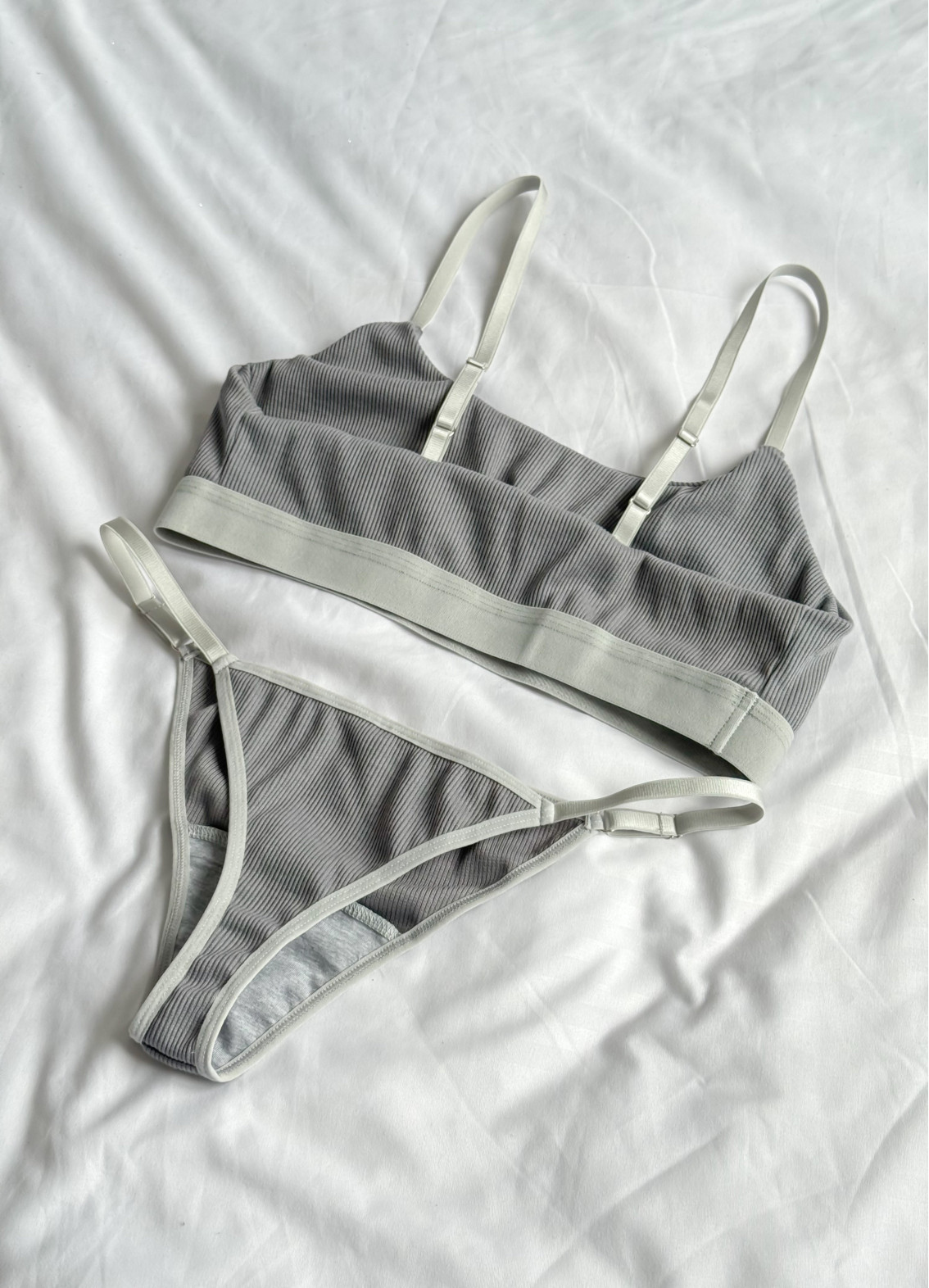 Жіночий комплект білизни в рубчик топ та стрінги, сірий 5279-5280