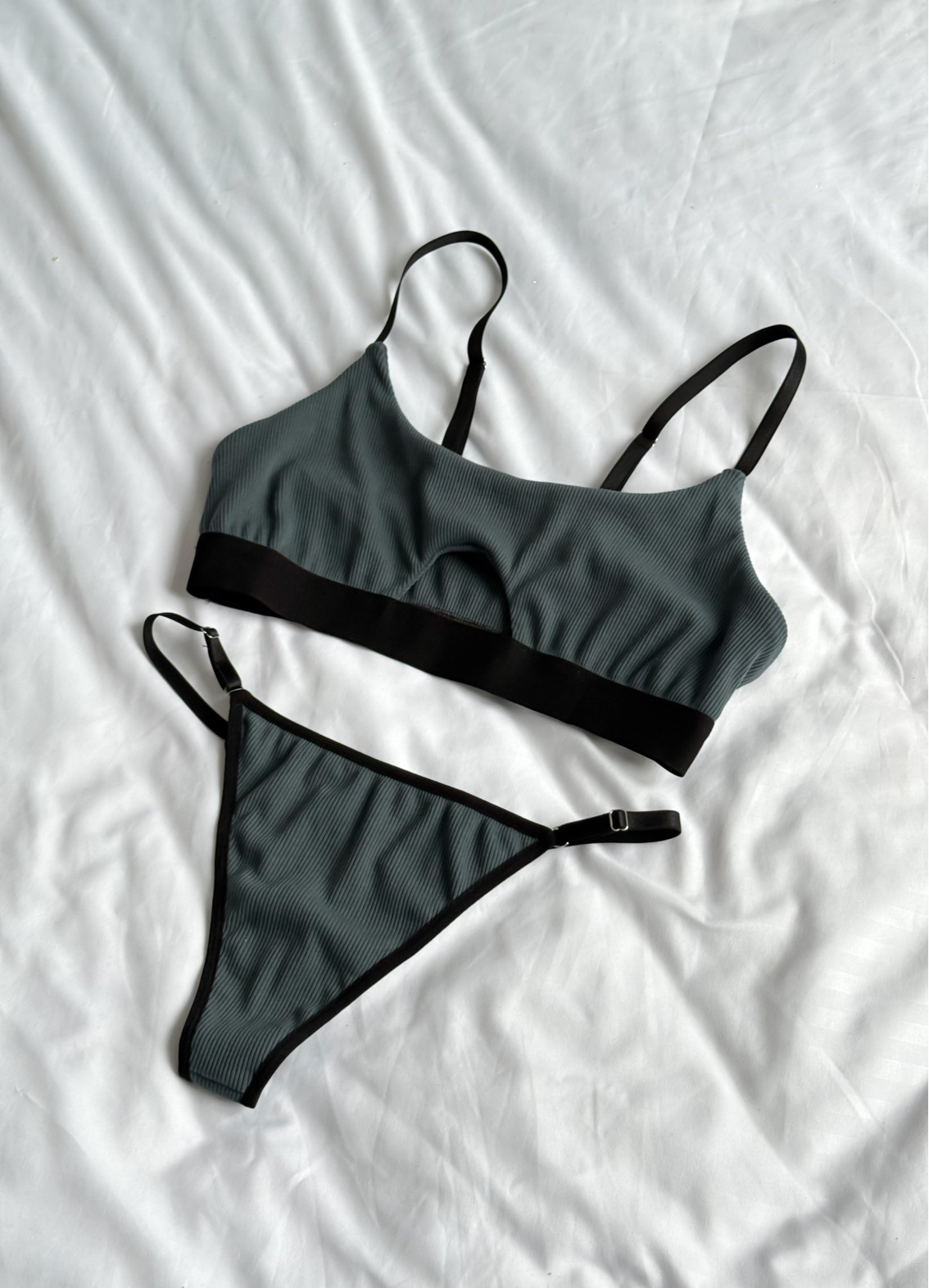 Жіночий комплект білизни в рубчик топ та стрінги, темно-сірий 5279-5280
