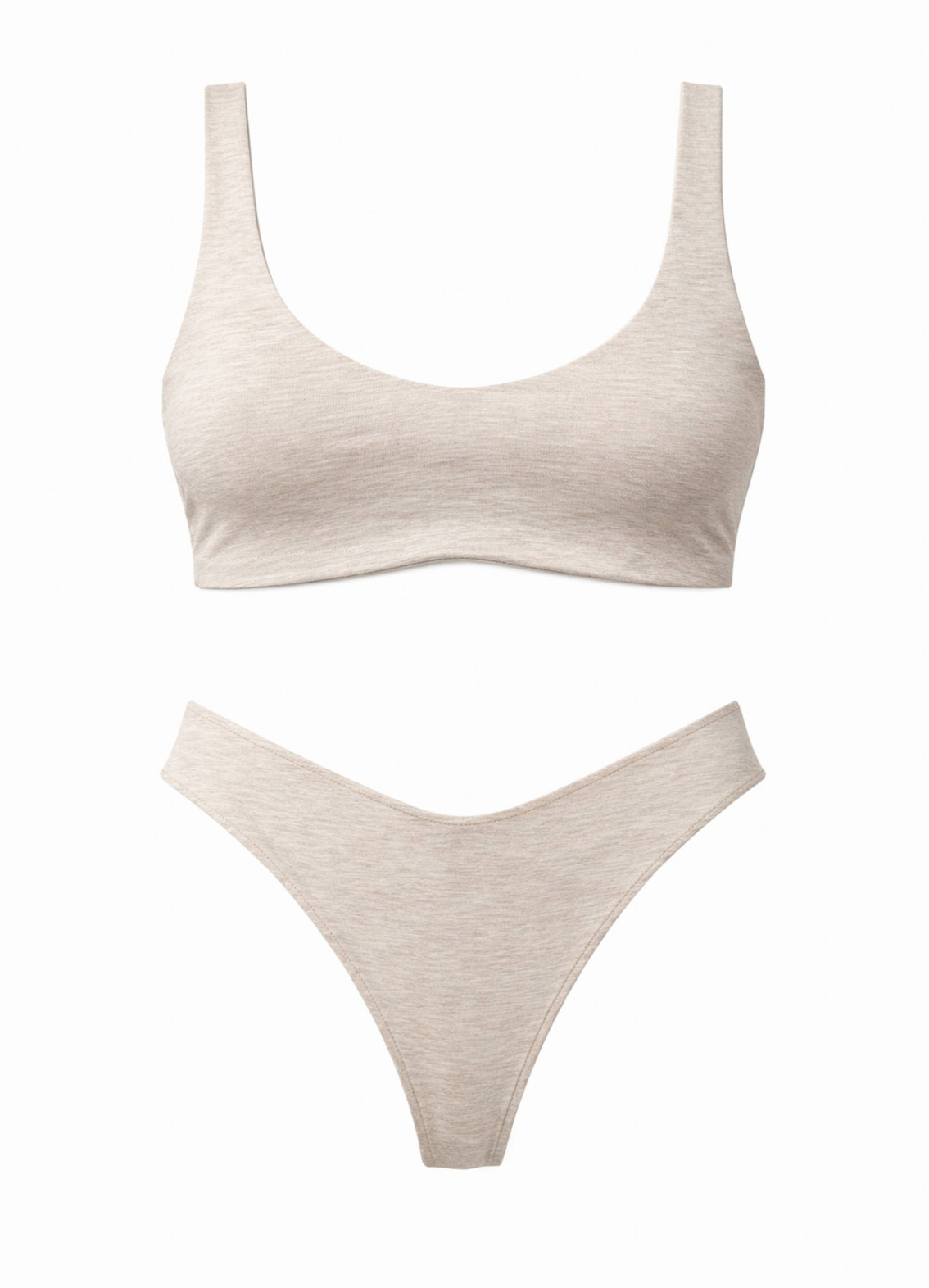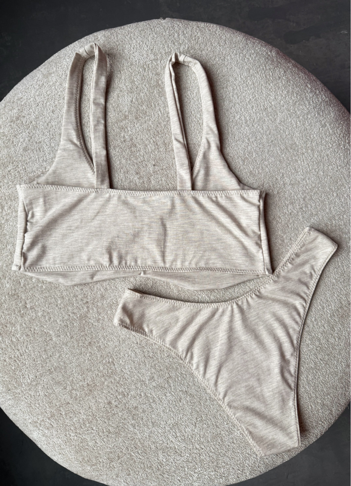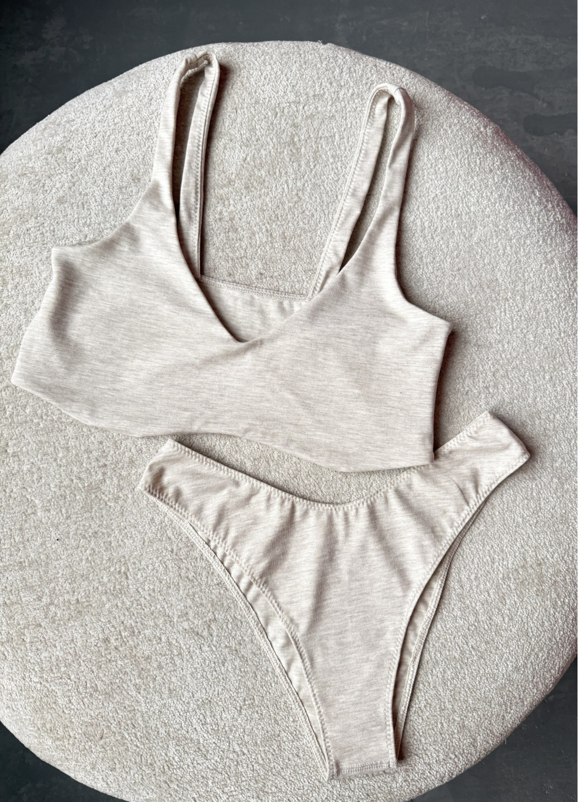 Жіночий комплект білизни топ та бразиліани, сіро-бежевий 5215-5216