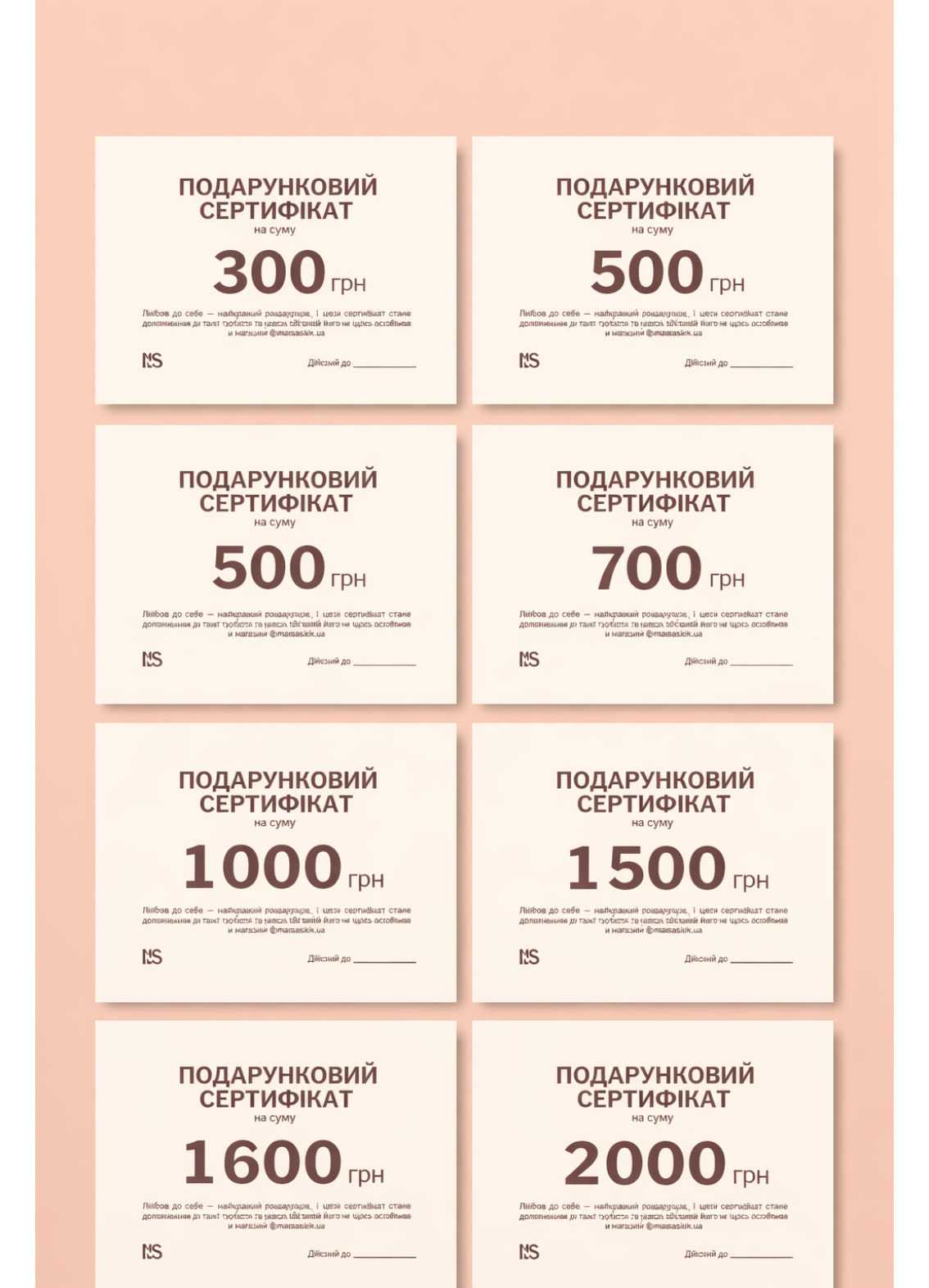- Сертифікат не підлягає поверненню та обміну на грошовий еквівалент.